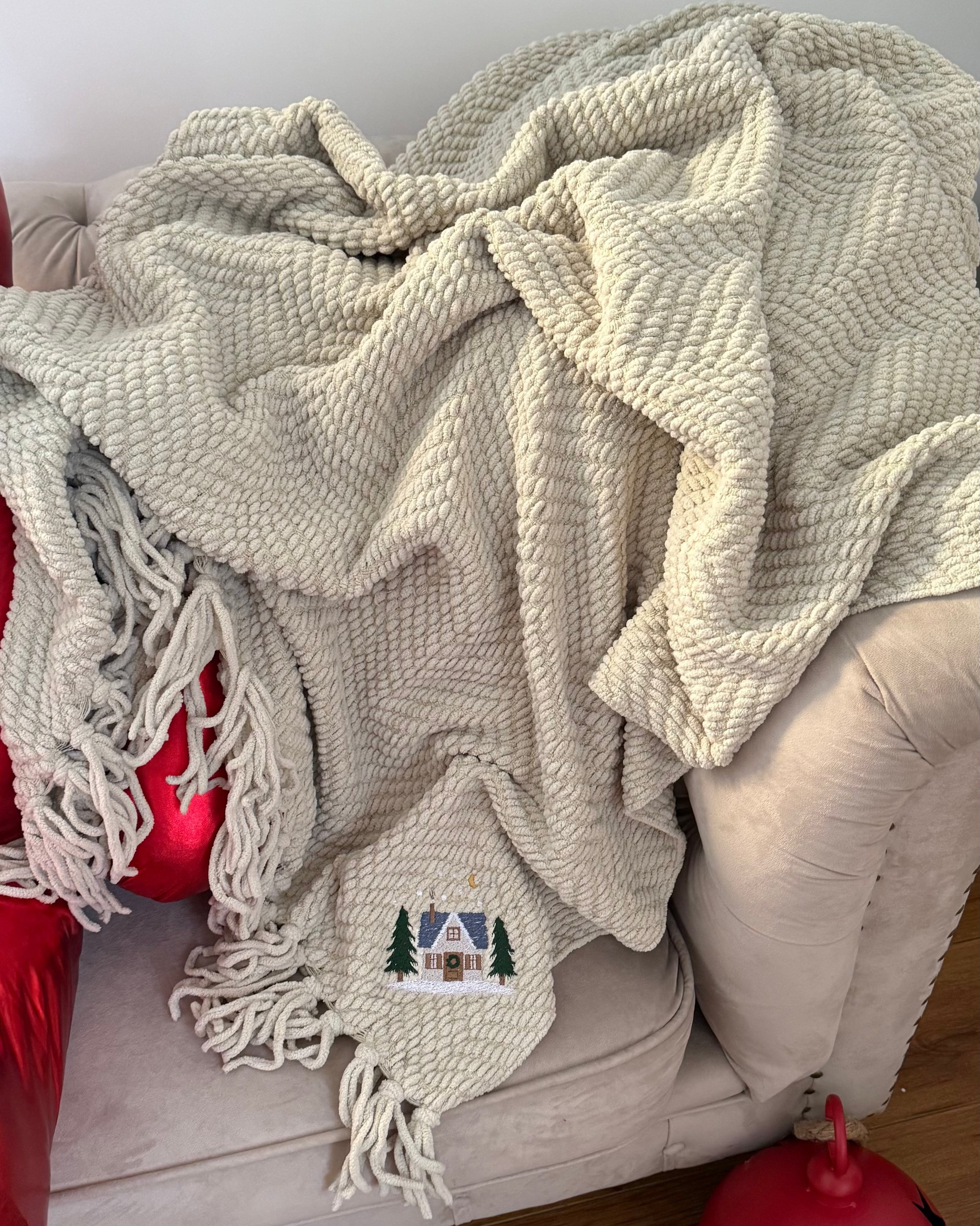 Envuélvete en calidez navideña con esta cobija beige que trae la magia de las festividades directamente a tu hogar.