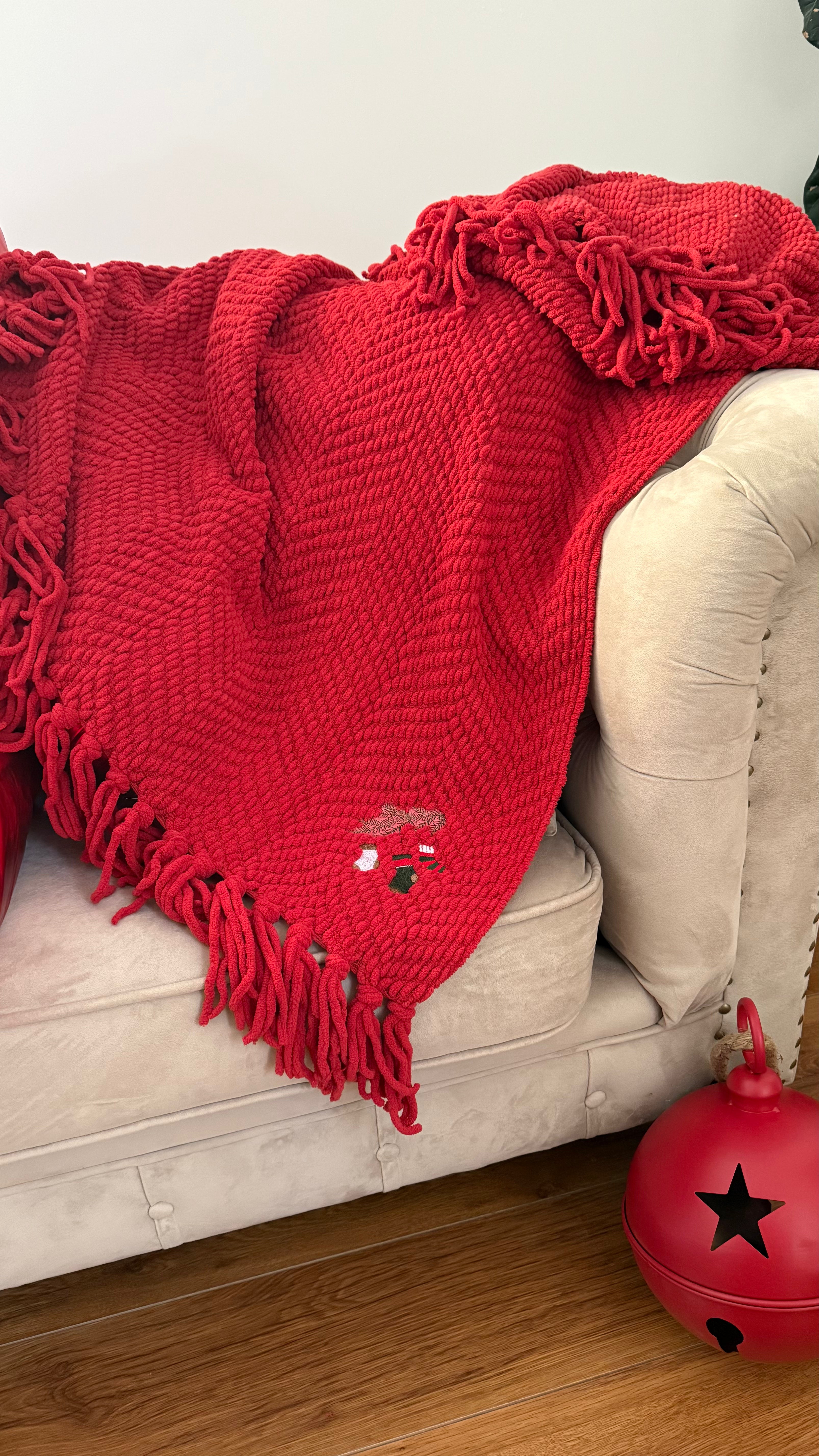Envuélvete en calidez navideña con esta cobija roja que tú personalizas.