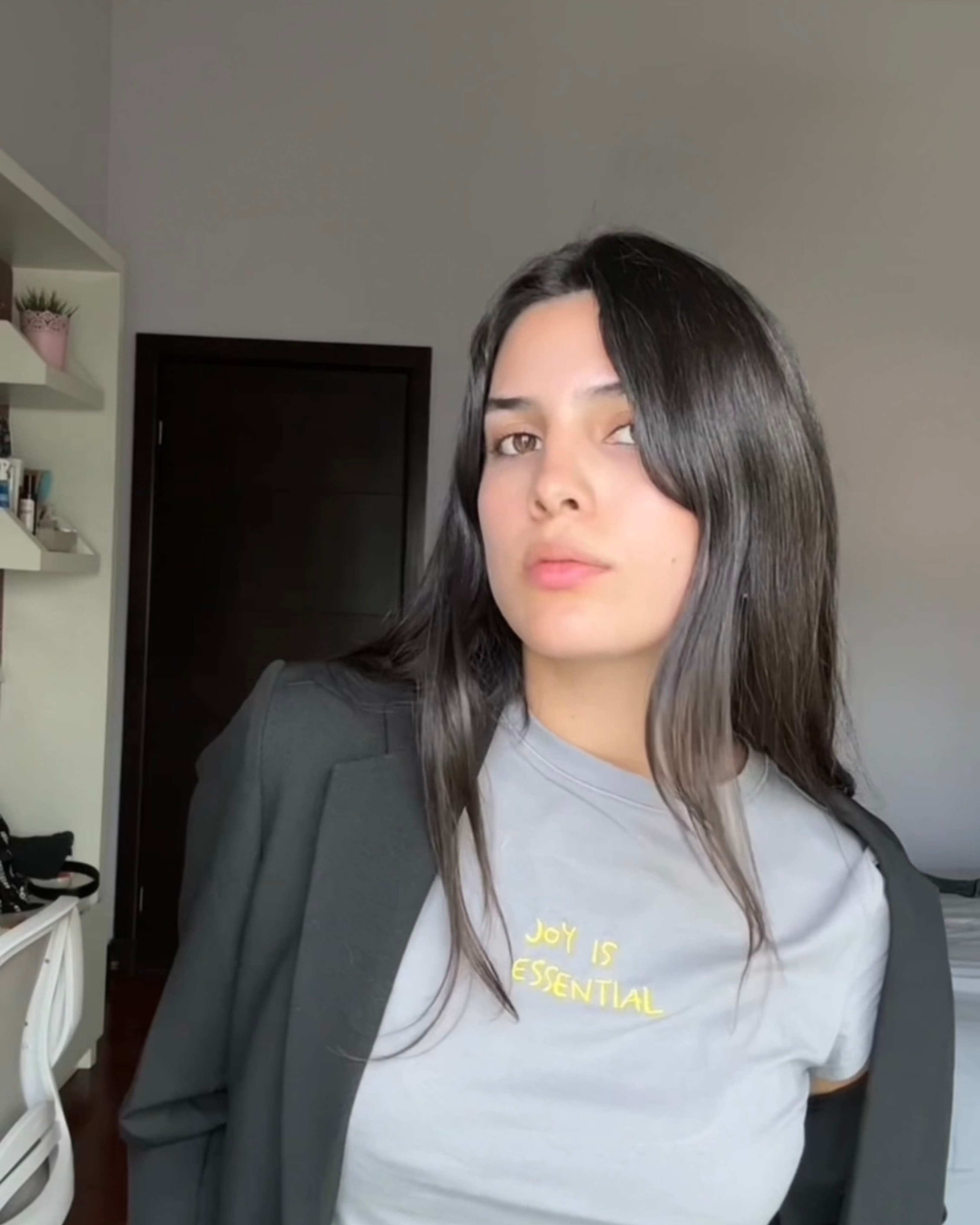 Su bordado en amarillo fosforescente que dice "Joy is Essential" añade un mensaje alegre y vibrante, perfecto para quienes buscan expresar su buen humor con moda ligera y fresca.