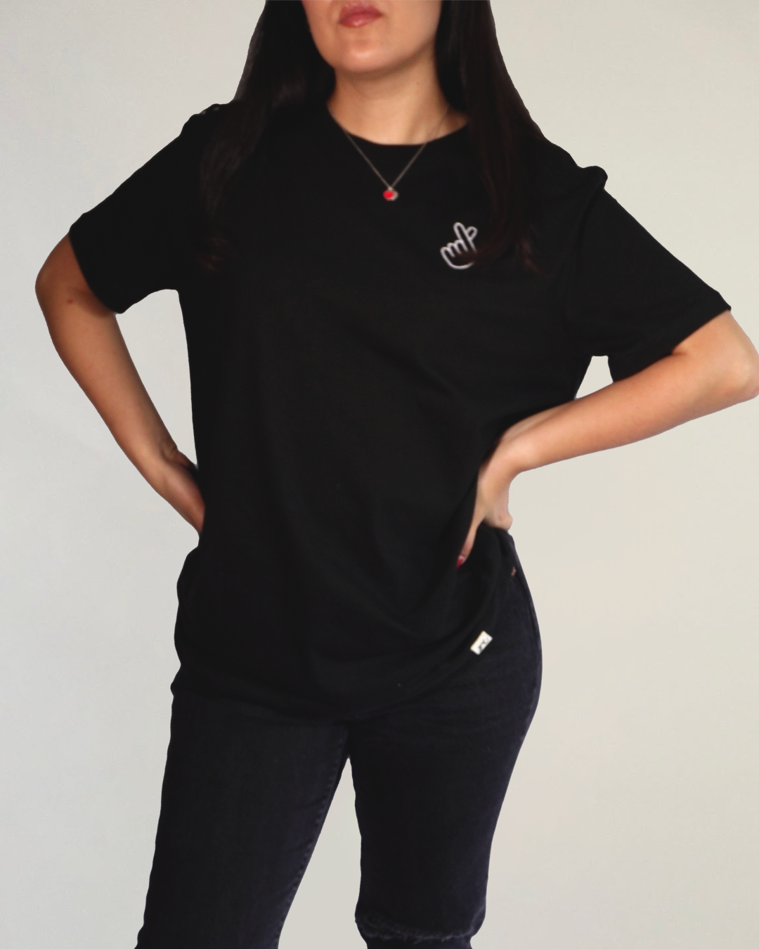 "Dale un toque de amor a tu outfit con esta playera negra de algodón peinado, tan suave que querrás vivir en ella.