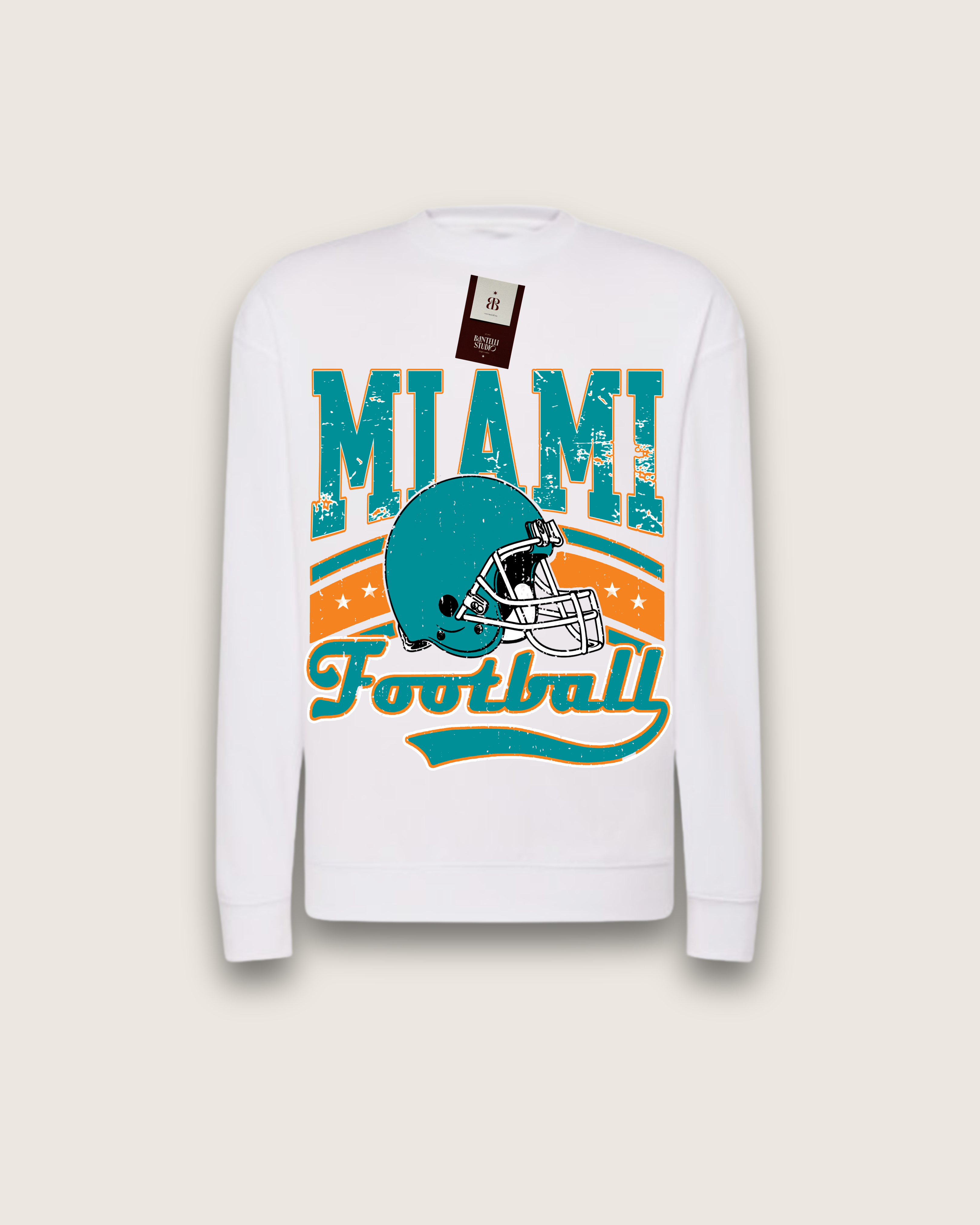 Este pullover blanco de algodón peinado es perfecto para los fans del equipo Miami que quieren lucir con estilo y comodidad.