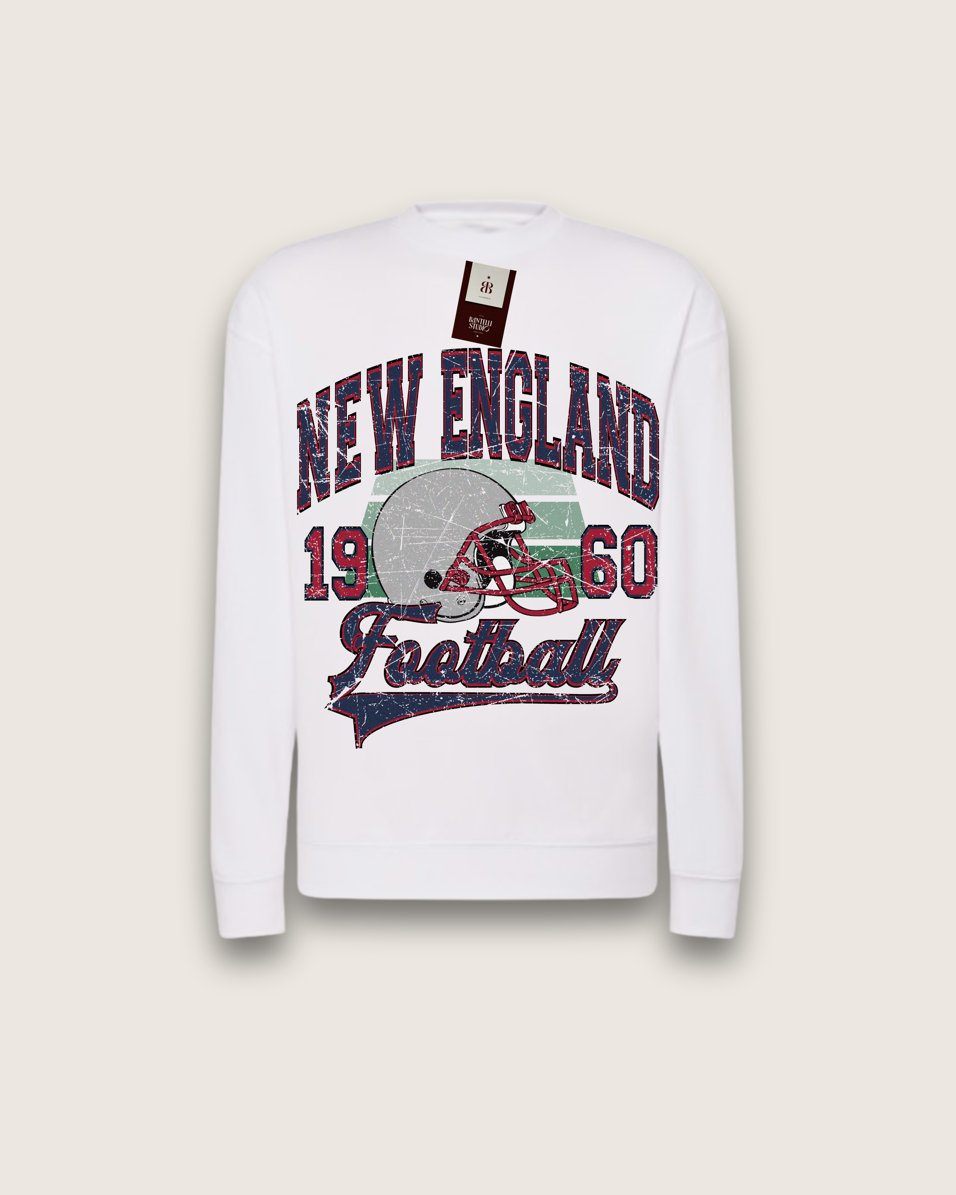 Disfruta la comodidad y demuestra tu pasión por el fútbol americano con esta sudadera blanca 100% algodón peinado, con la imagen del equipo de la NFL de New England.
