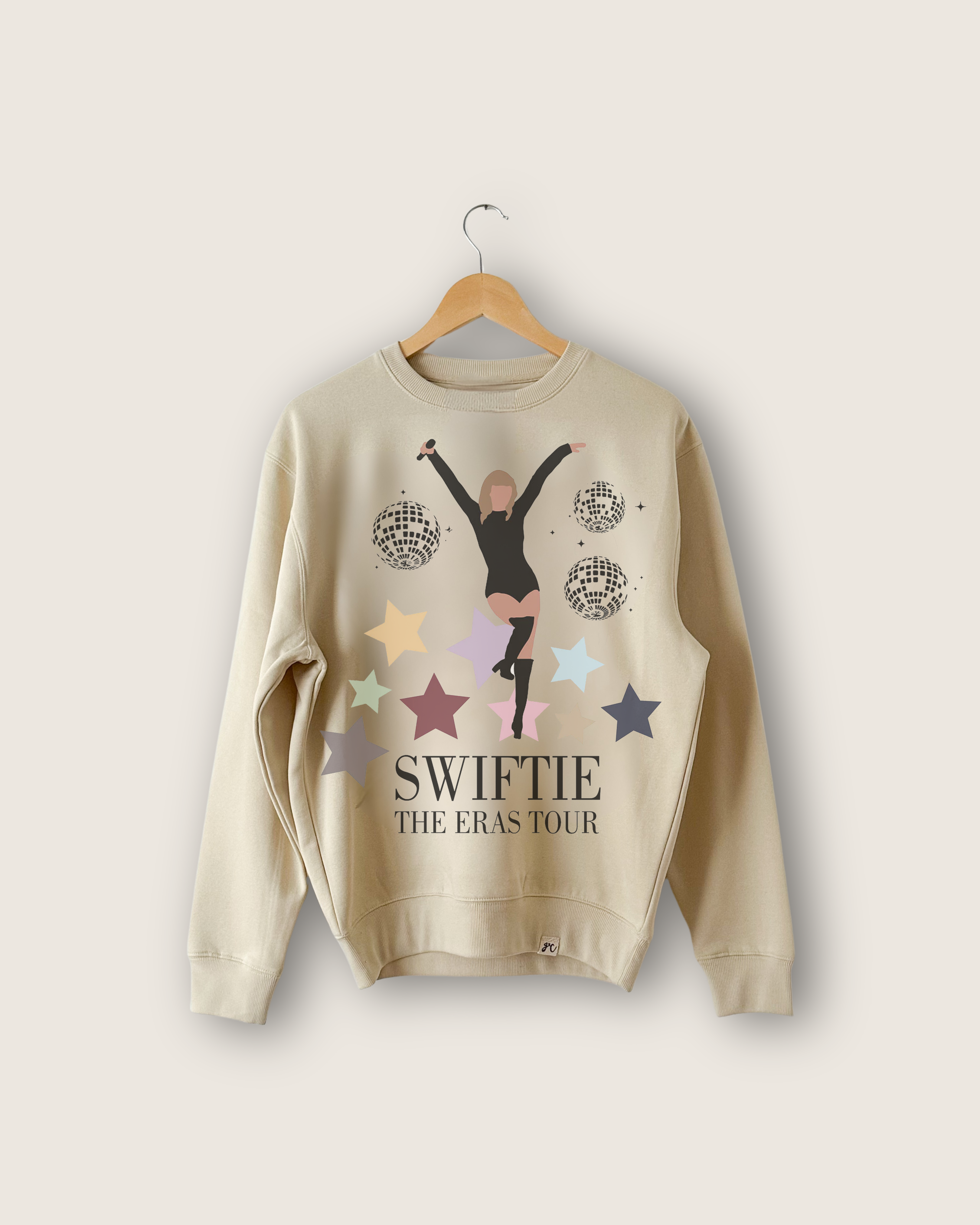 Disfruta la comodidad y el estilo fan con este pullover de algodón peinado, perfecto para cualquier Swiftie.