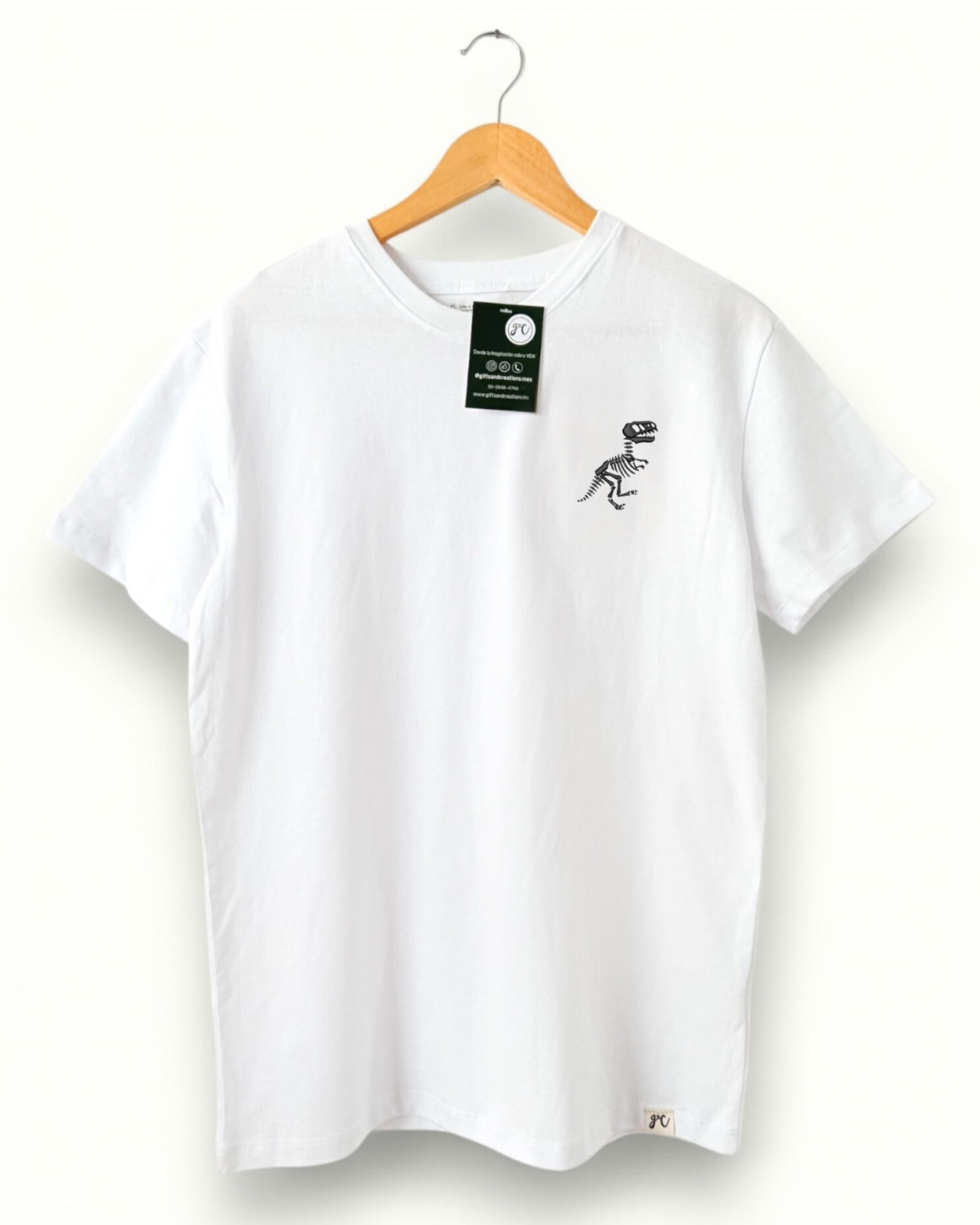 Haz que tu estilo grite prehistórico chic con esta T-shirt blanca de algodón peinado, tan suave y cómoda que podría ser tu nueva favorita.